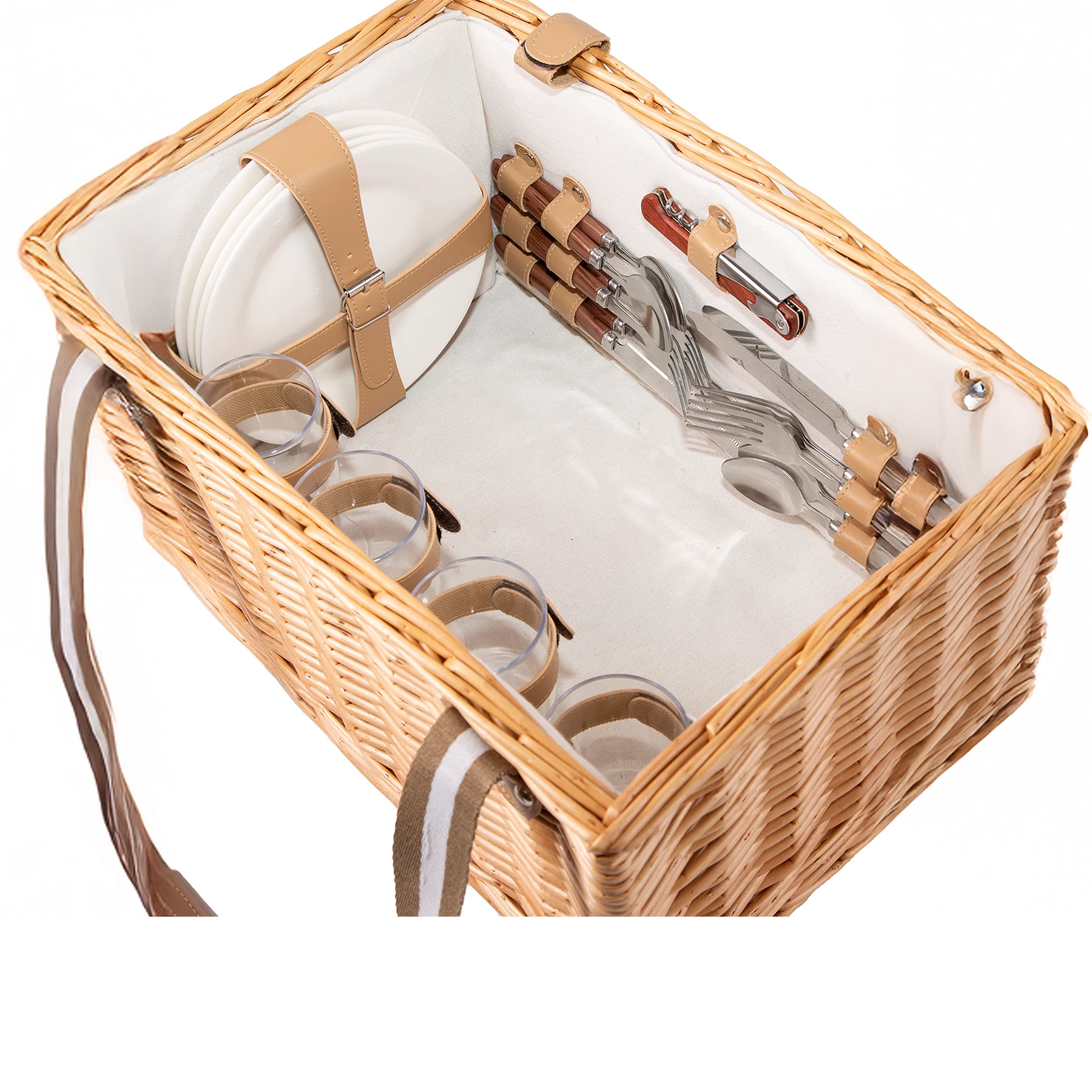 4 Person Wicker Picnic Hamper with Wooden Tabletop Lid