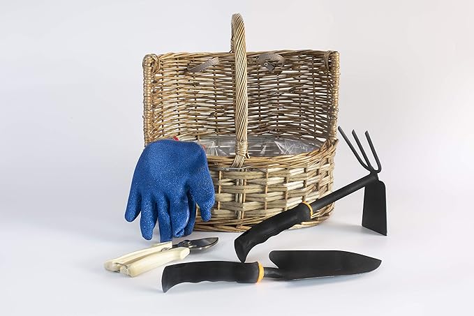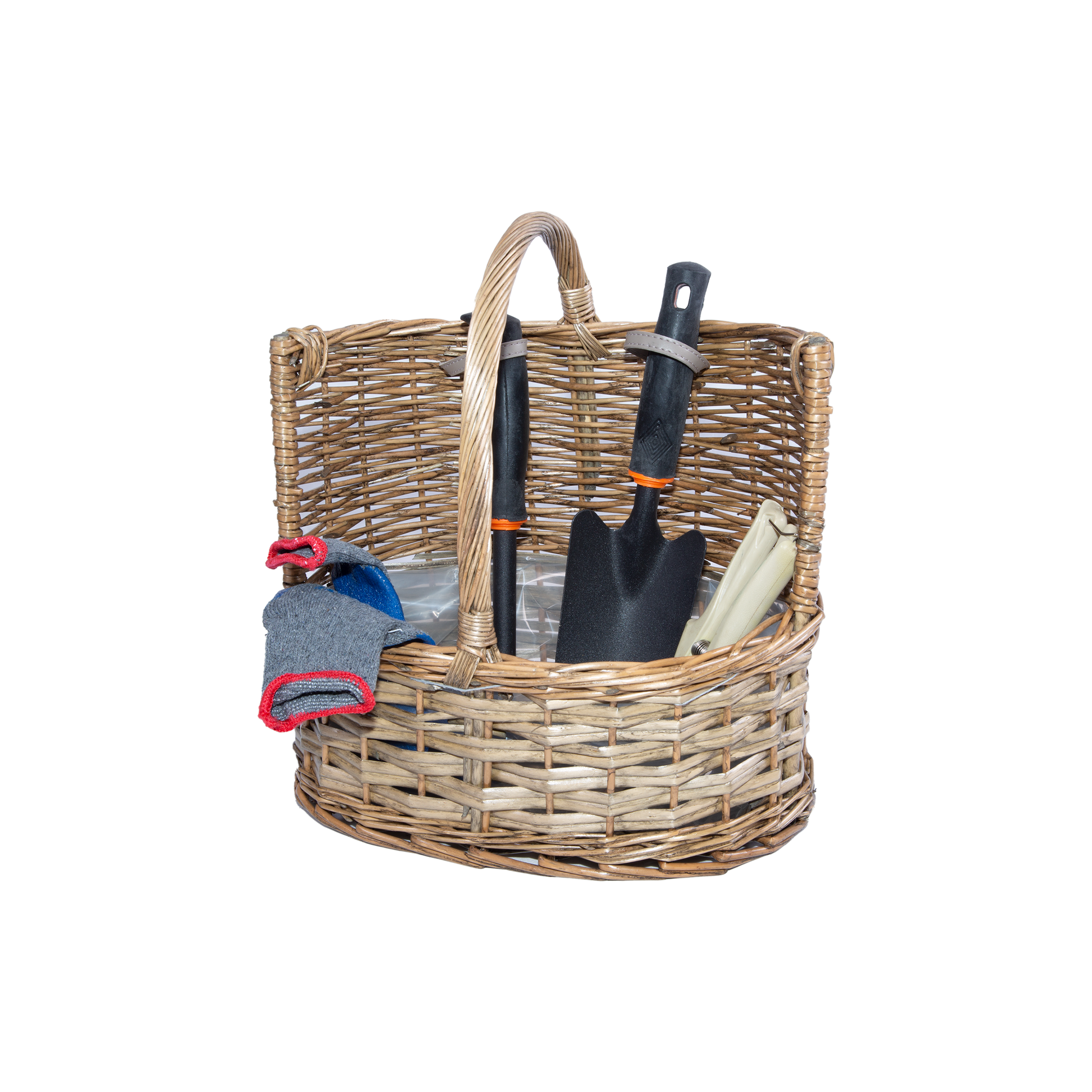 Split antique wash finish willow - Incl. pruning shear, three prong rake and spatula, shovel, gloves