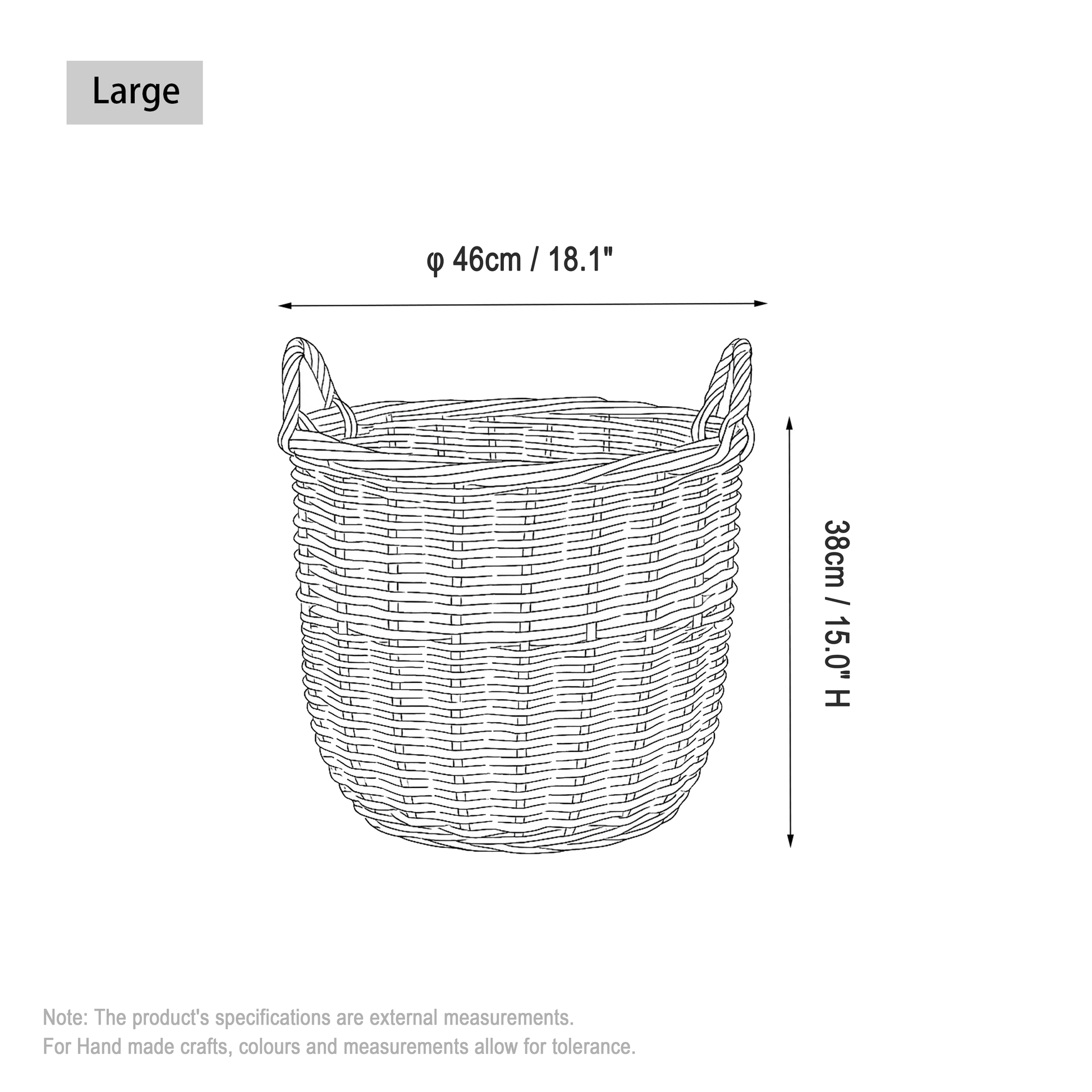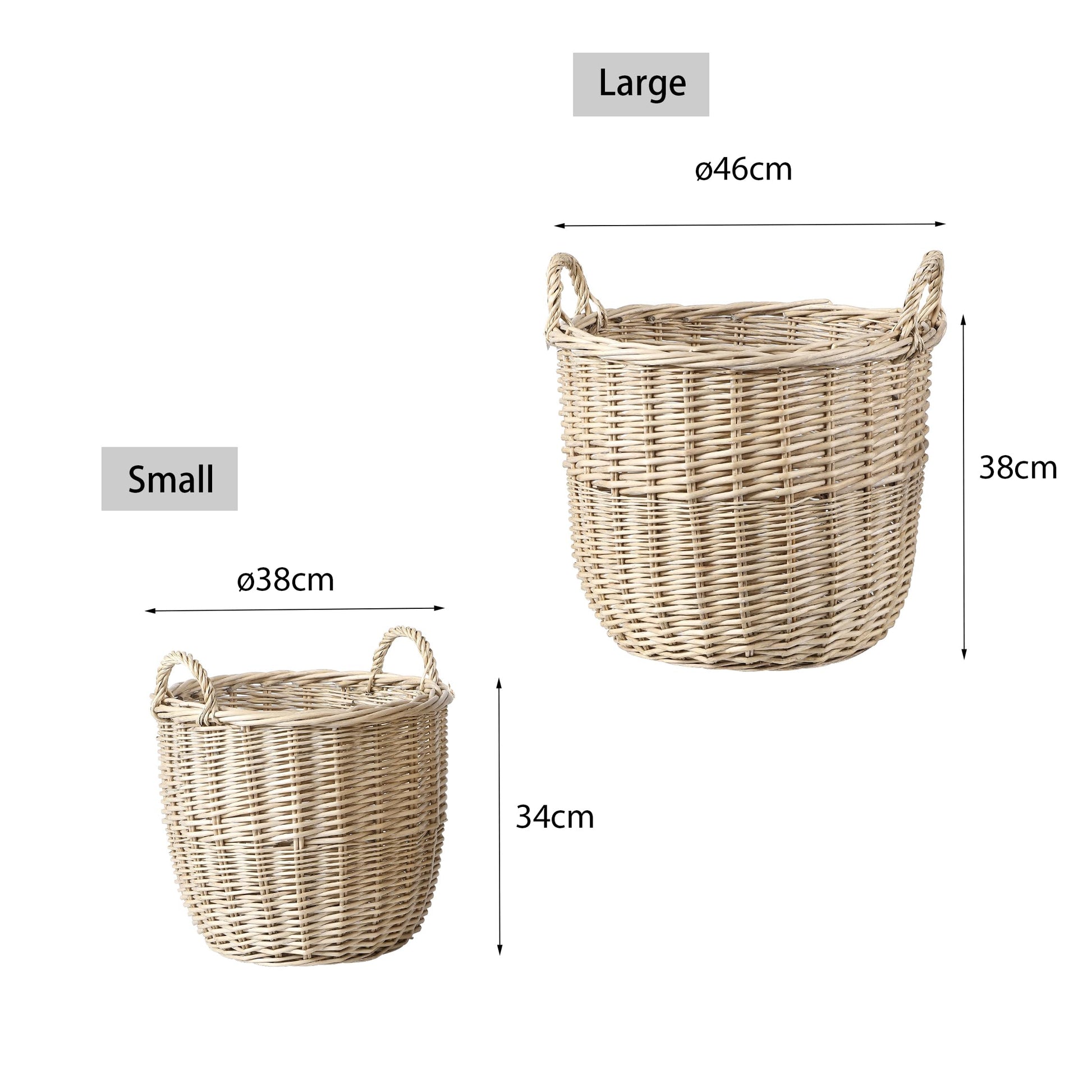 Antique Wash Round Wicker Storage Basket - 2 Sizes