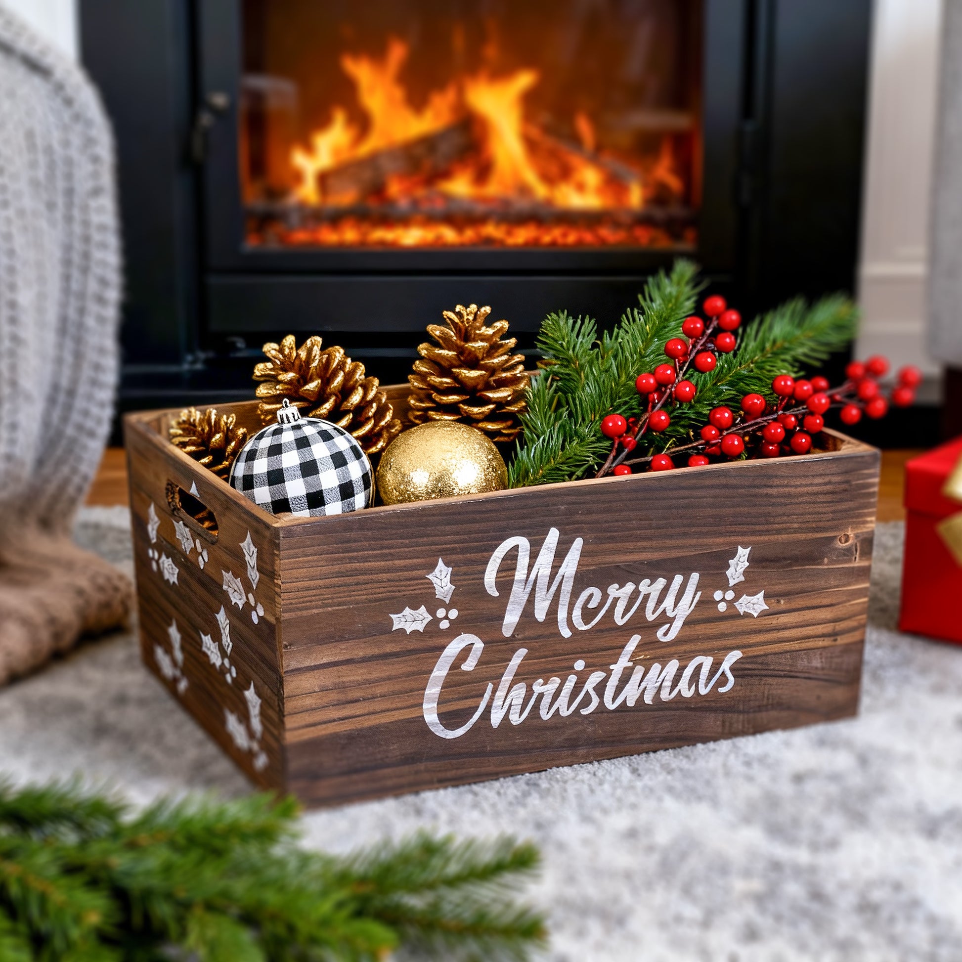 Brown Christmas Wooden Storage Crate