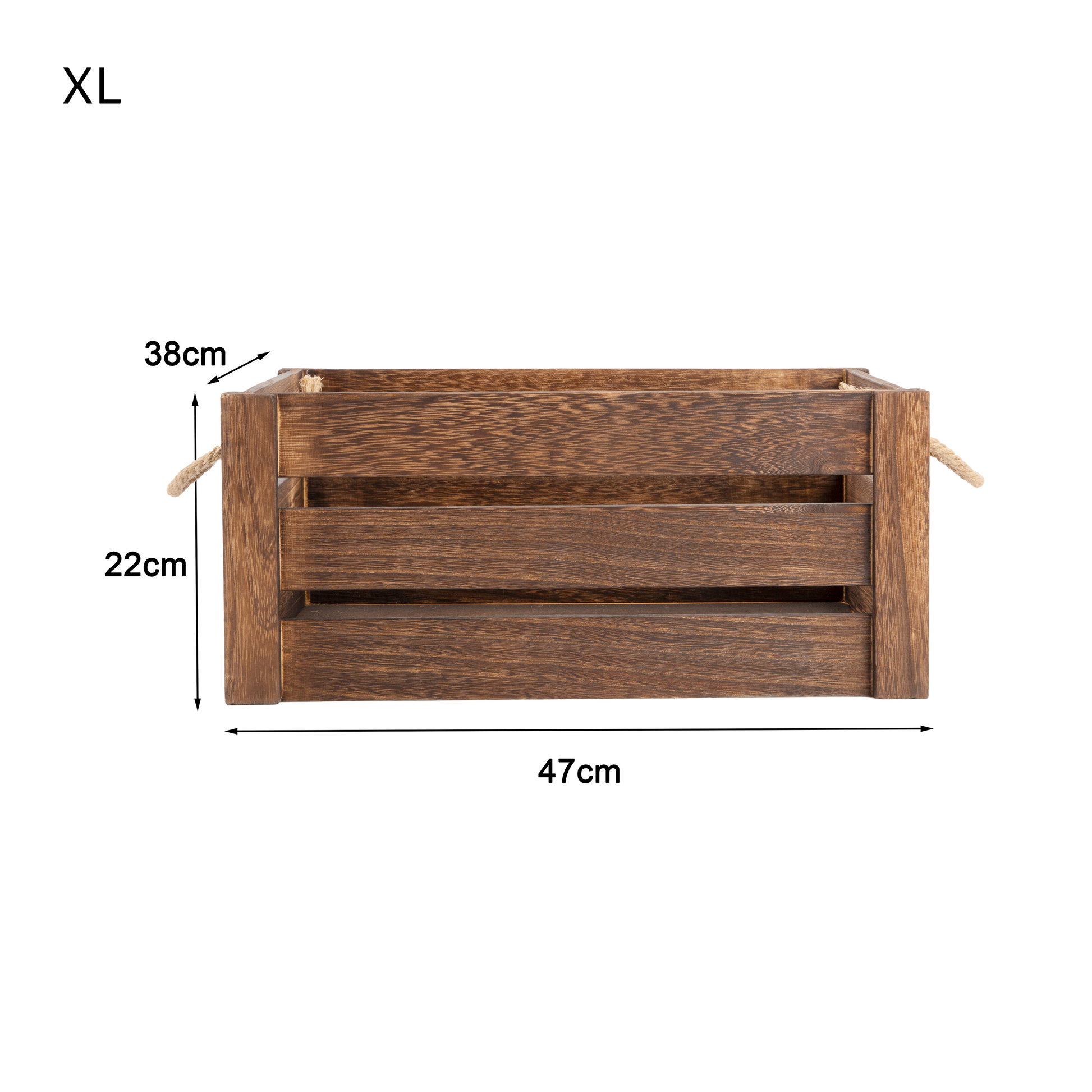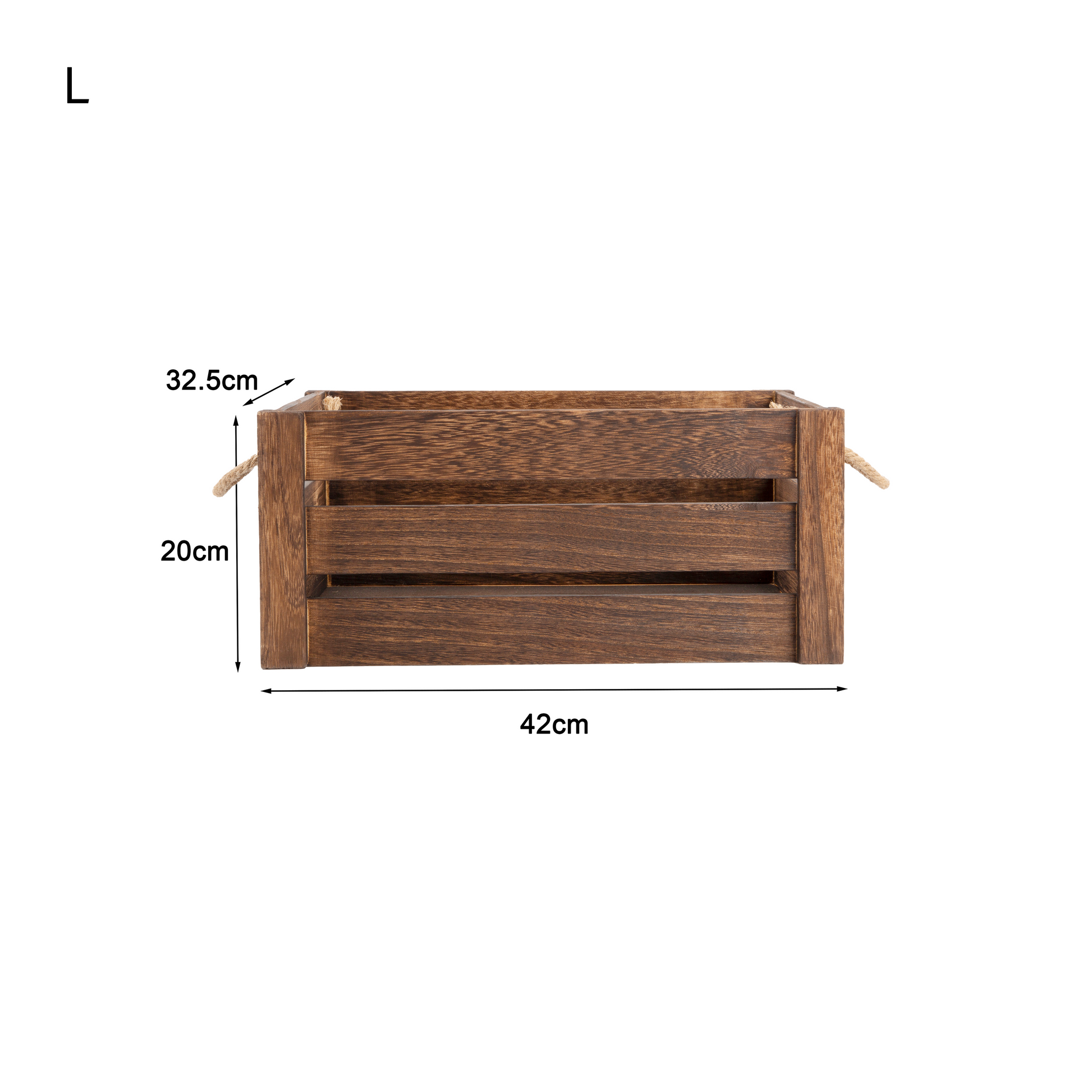 Brown Rope Handled Wooden Storage Crate - 3 Sizes