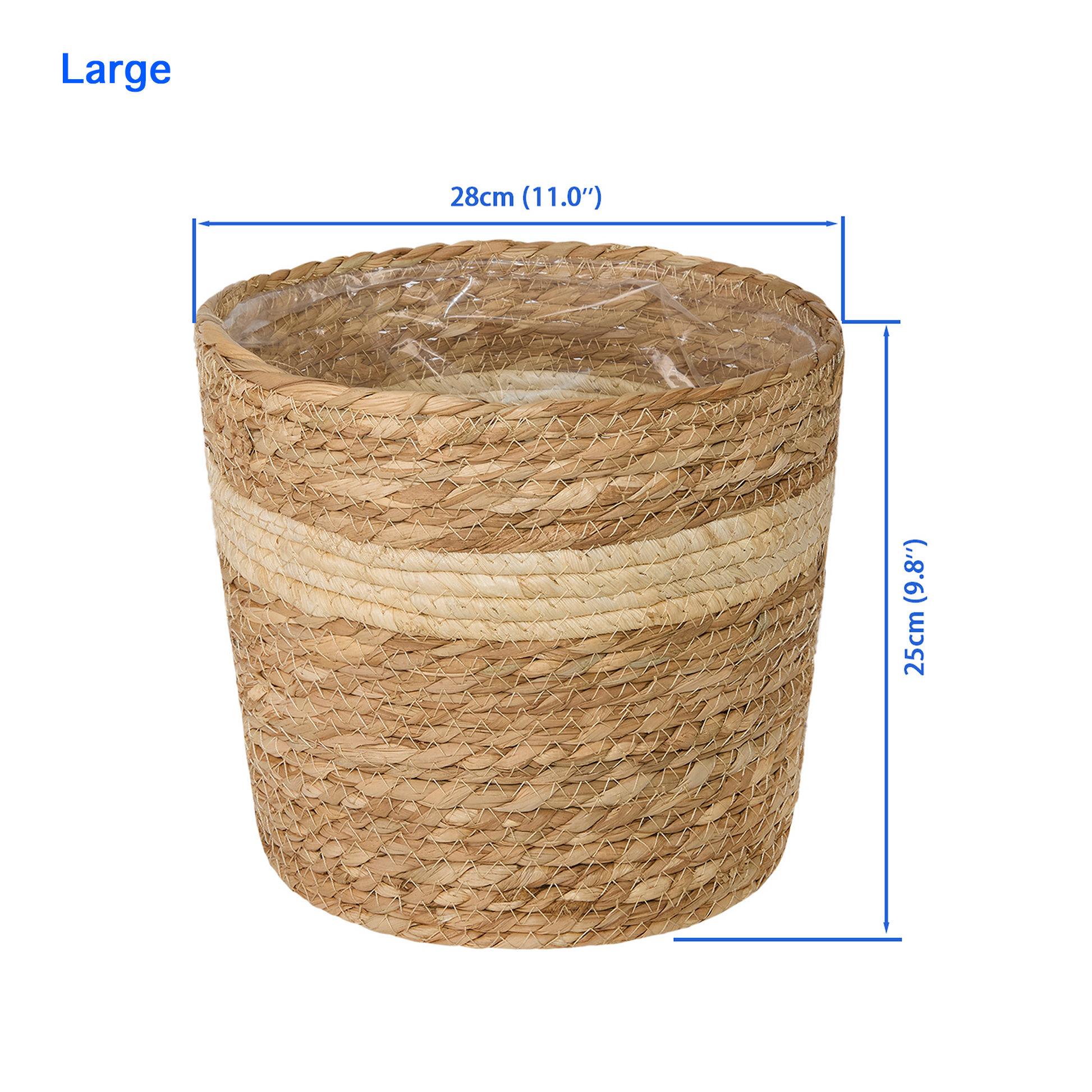 Cattail Woven Basket Planter with Plastic Lining - 2 Sizes