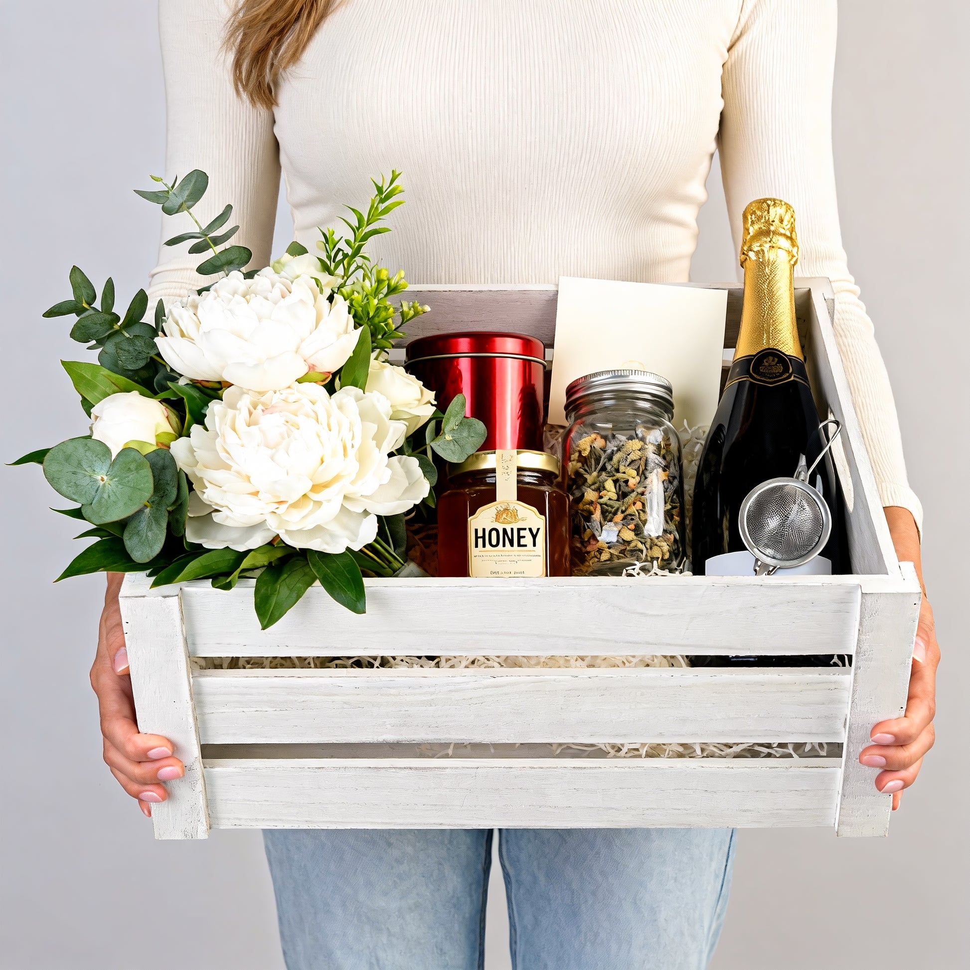 Grey Oval Cut-out Slatted Wooden Crate - 3 Sizes