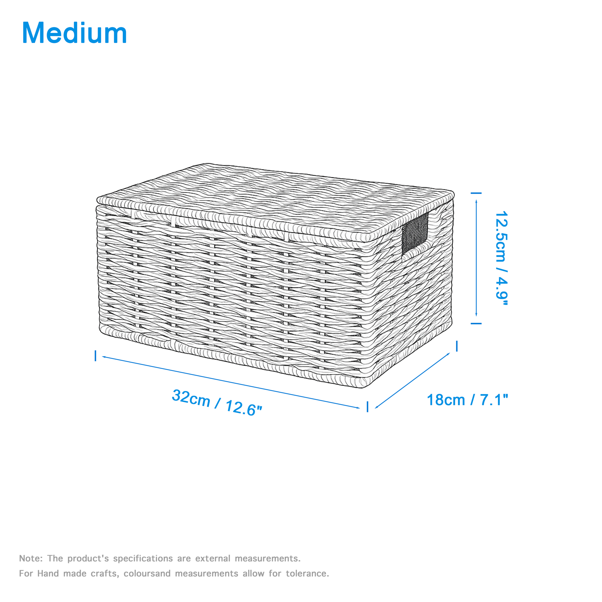 Medium: (L x W x H) 32 x 18 x 12.5cm