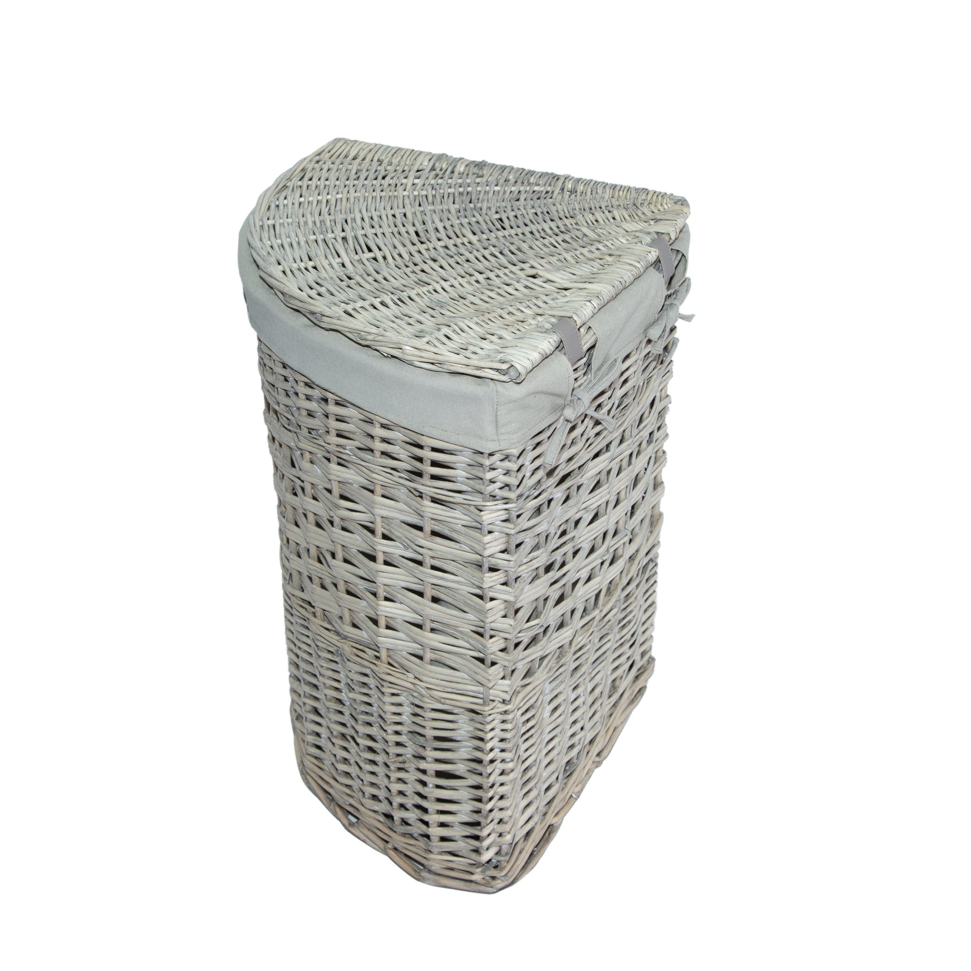 Grey Wash Corner Wicker Laundry Basket with Lining