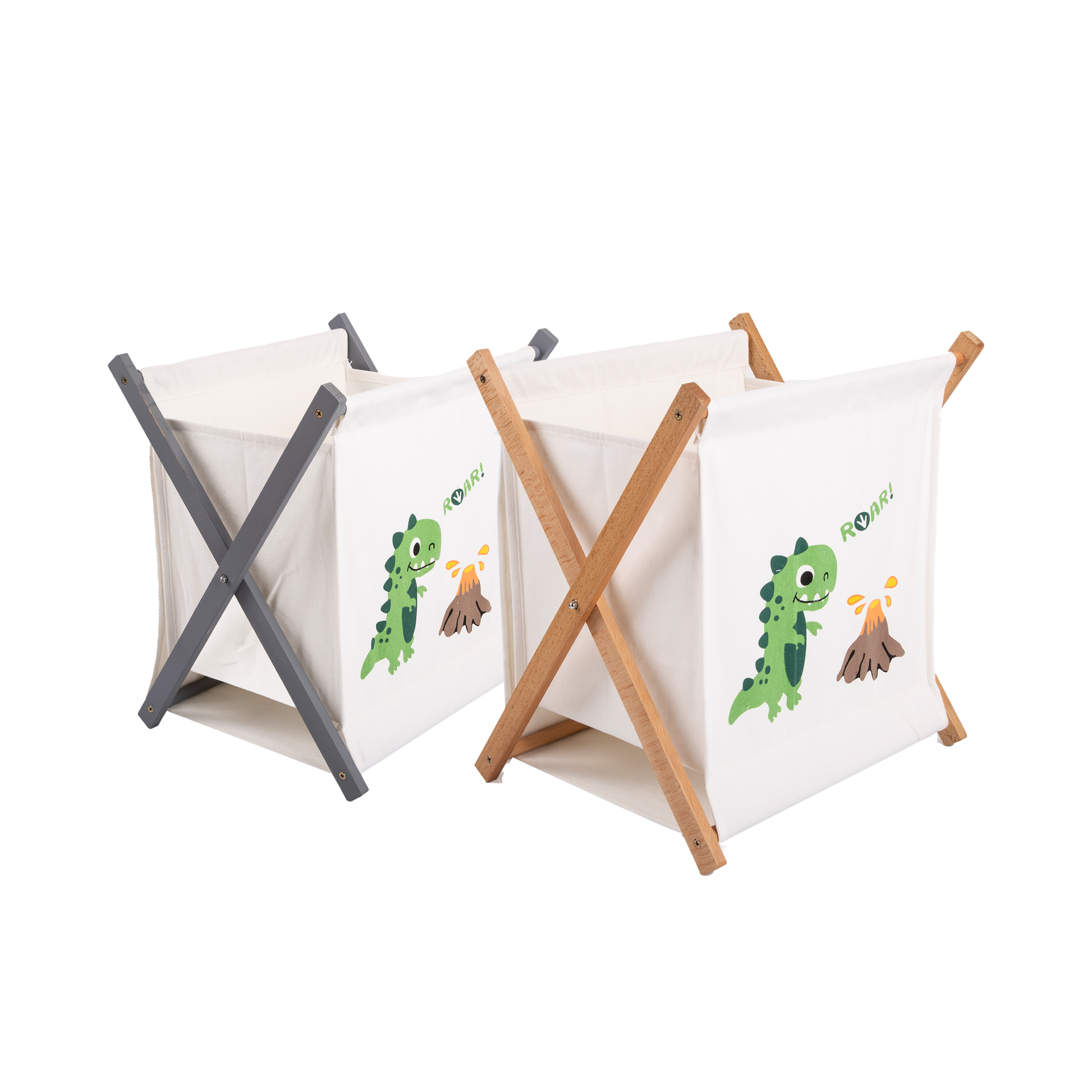 Medium Collapsible Dinosaur Pattern Cotton Laundry Bag - Grey / Natural