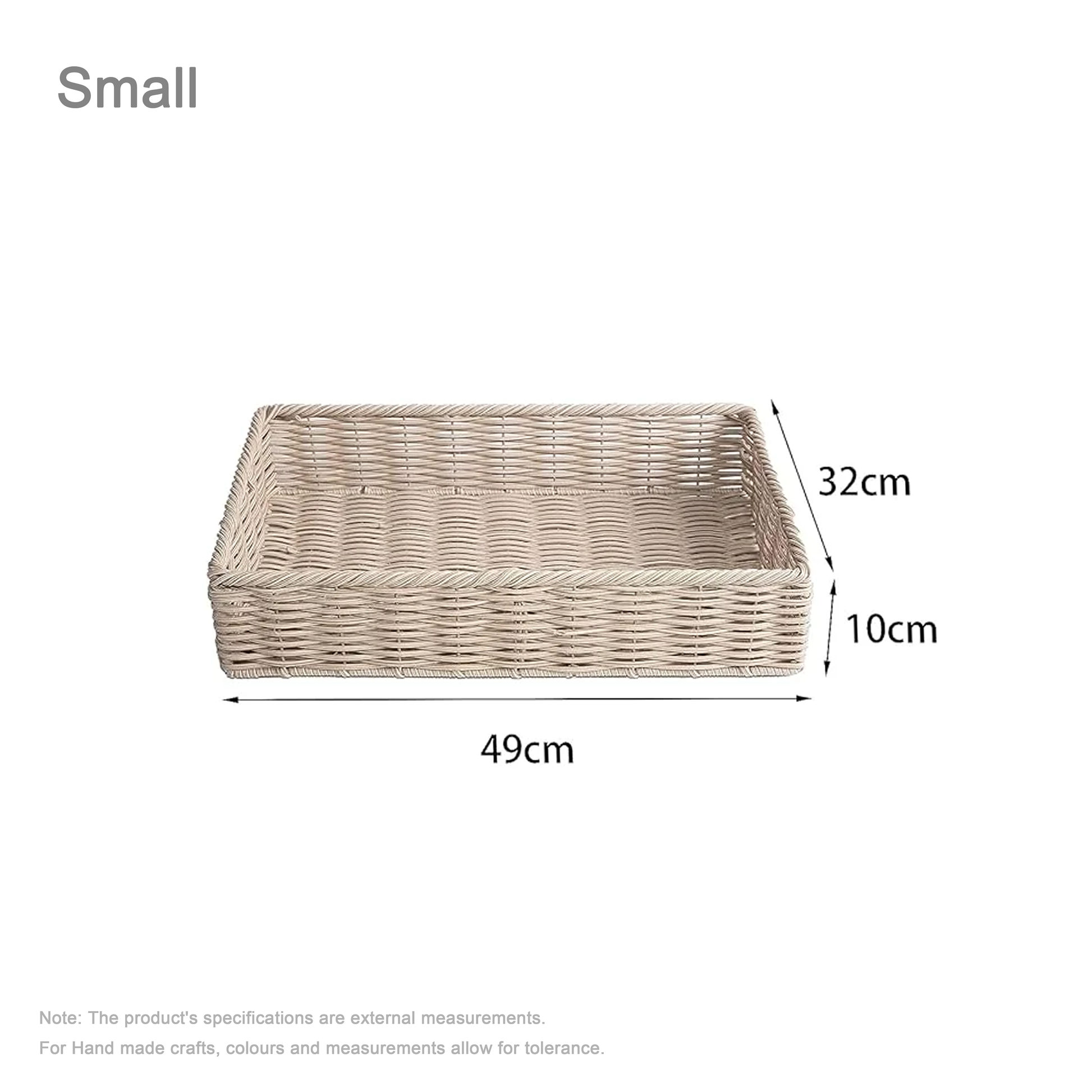 Beige Wicker-Style Storage Basket Tray - 2 Sizes