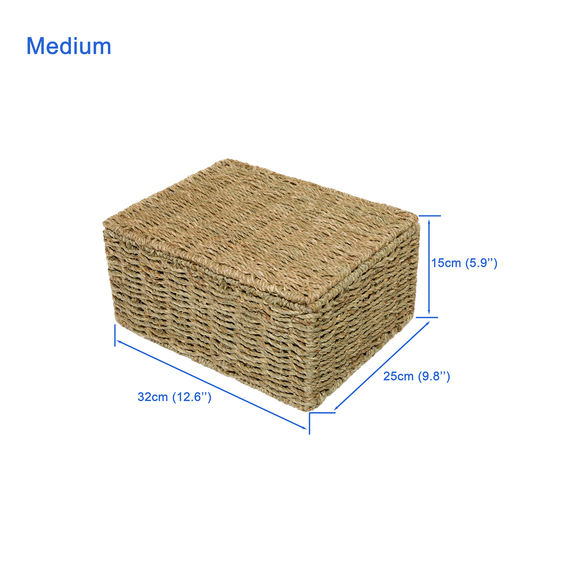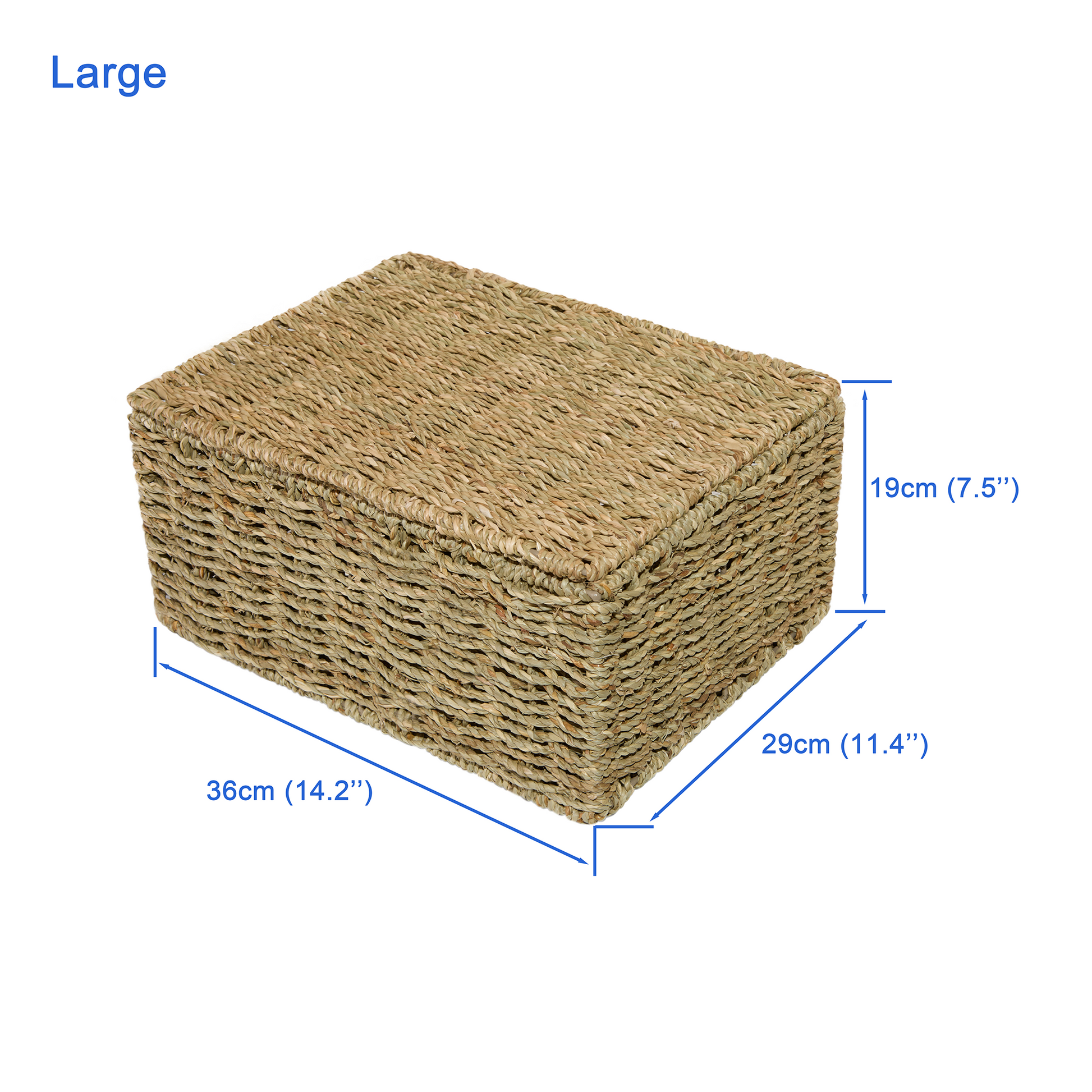 Seagrass Rectangular Lidded Storage Hamper Basket - 3 Sizes