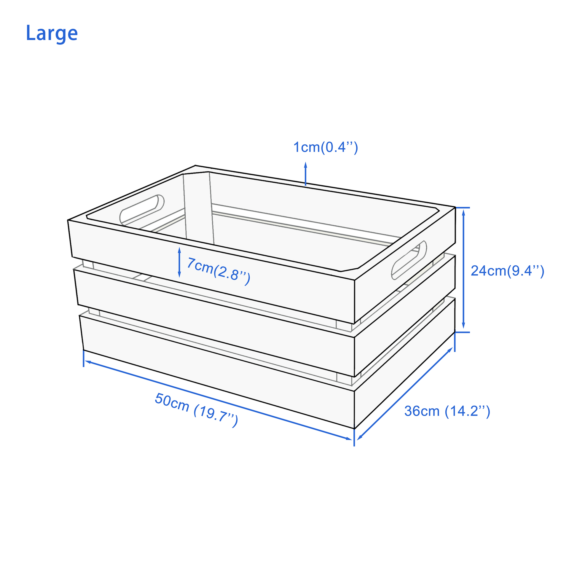 Large: (L x W x H) 50 x 36 x 24cm