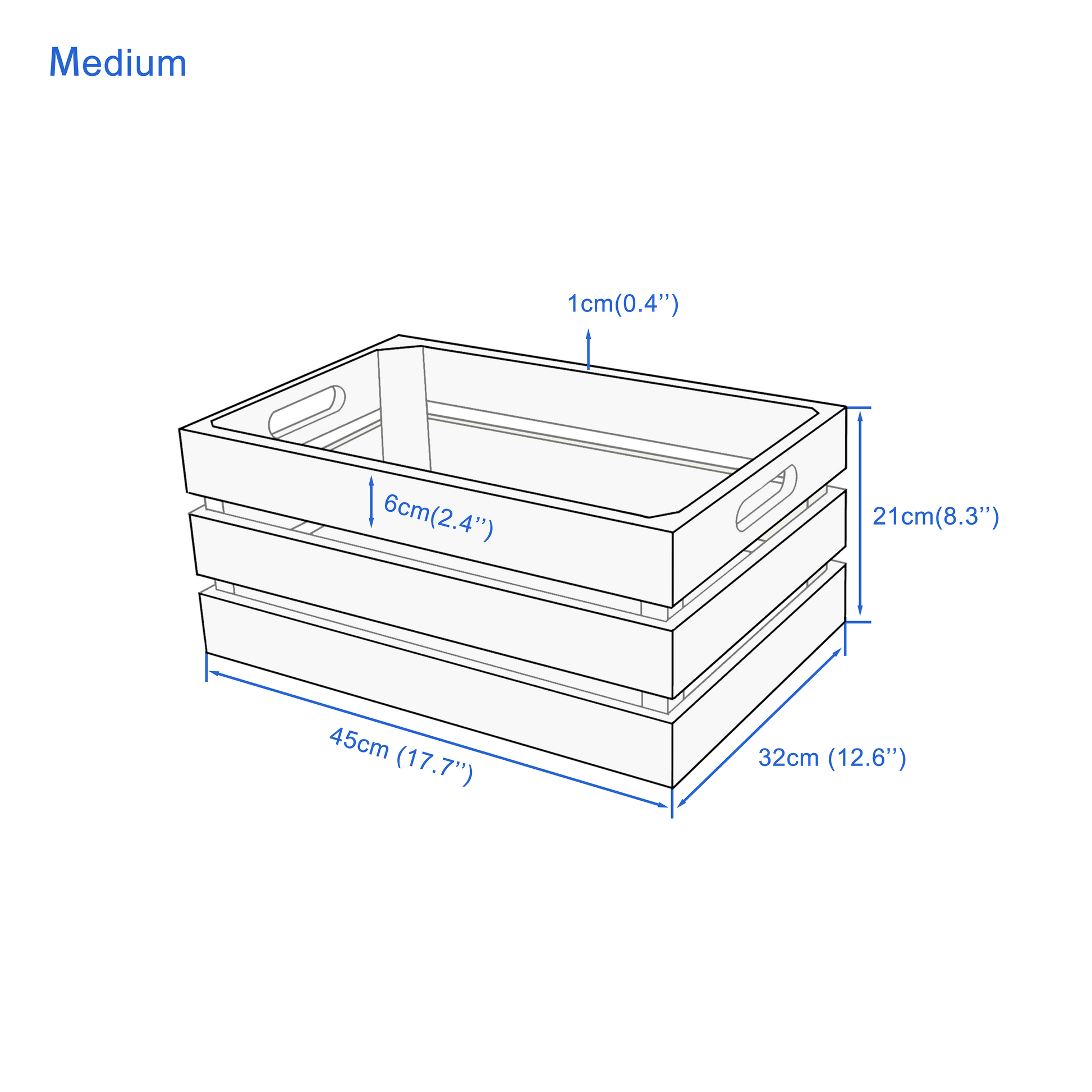 Medium: (L x W x H) 45 x 32 x 21cm