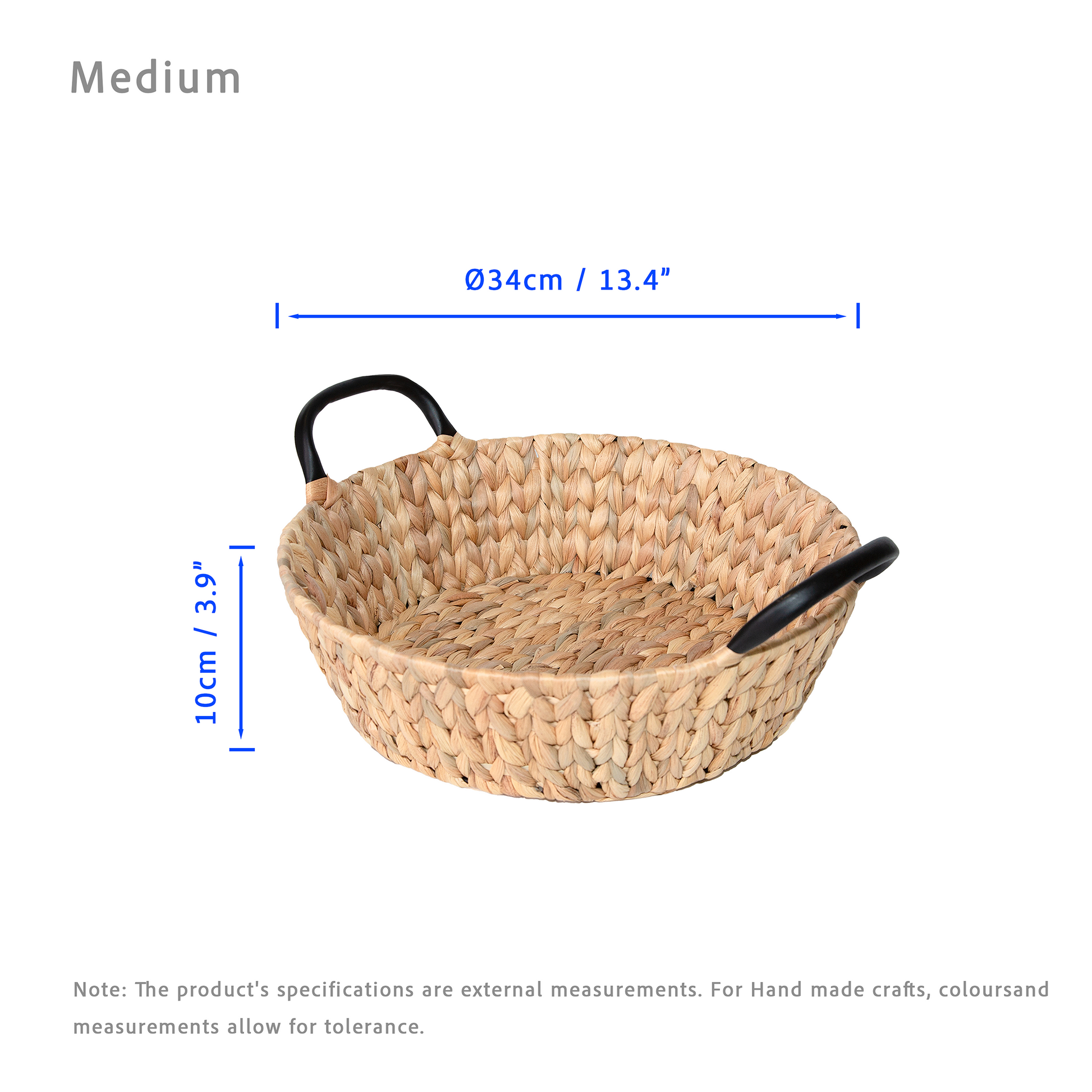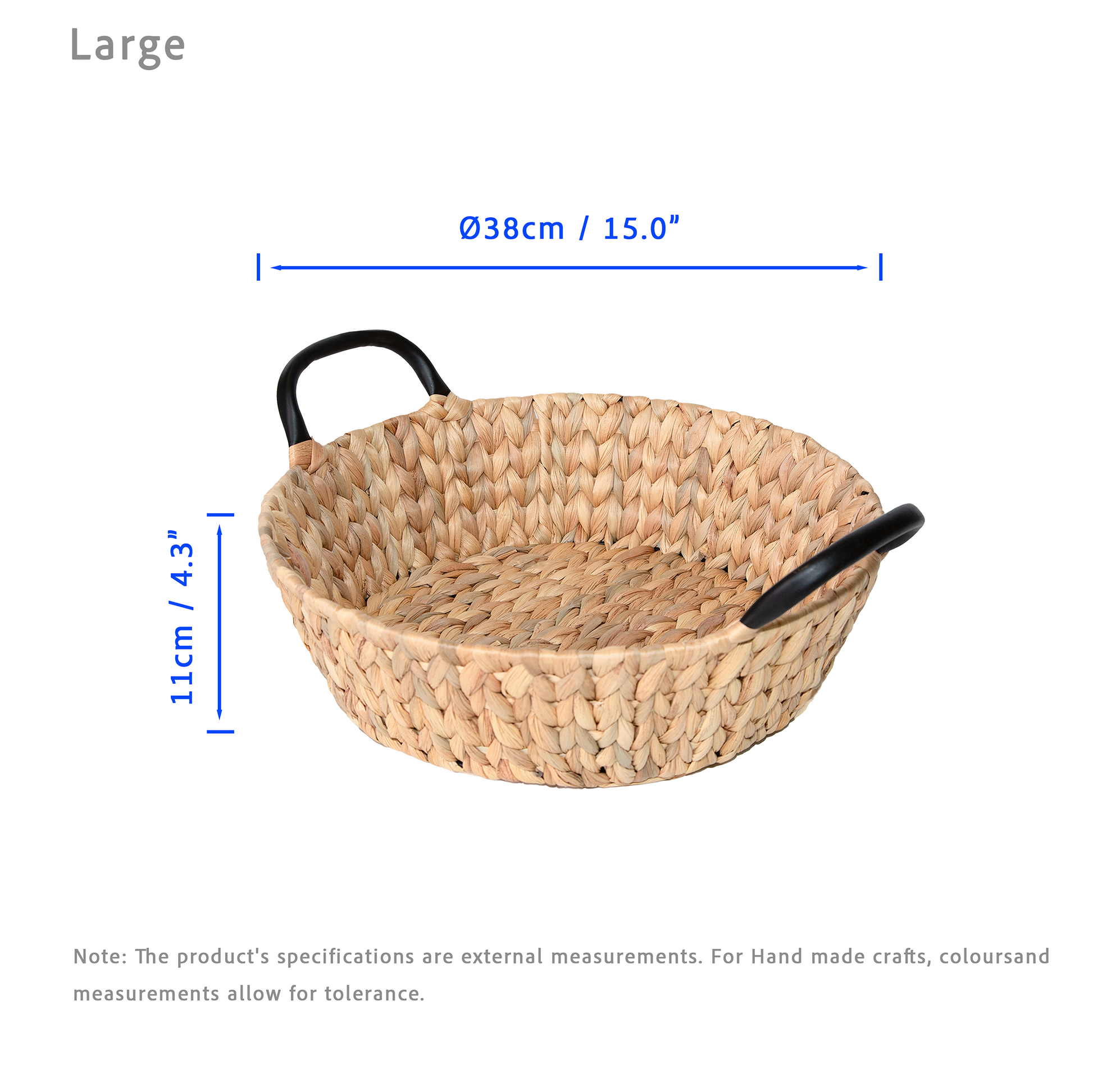 Water Hyacinth Round Basket Tray with Black Handle - 3 Sizes