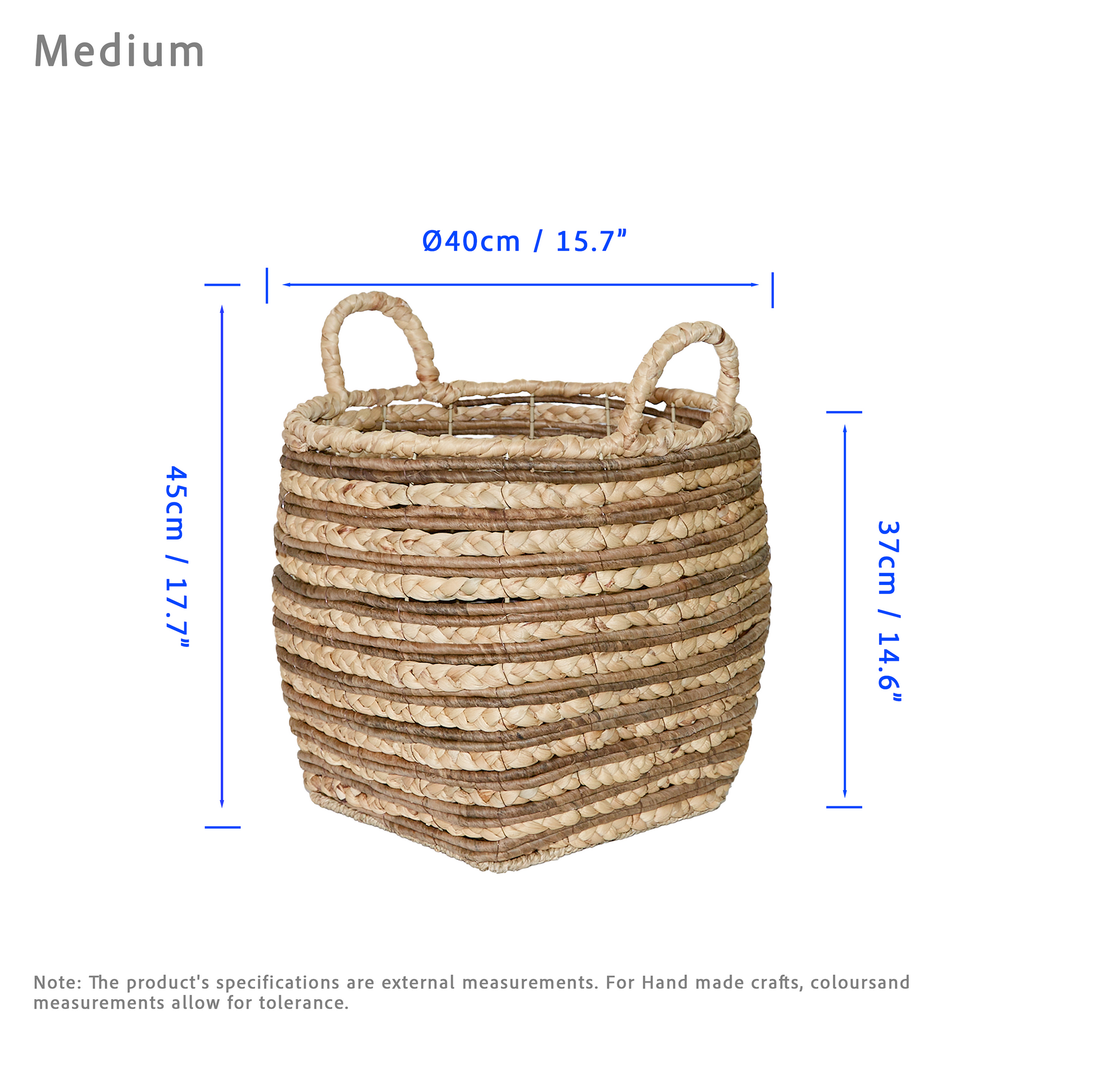 Water Hyacinth Two-Tone Blanket Basket with Handle - 3 Sizes