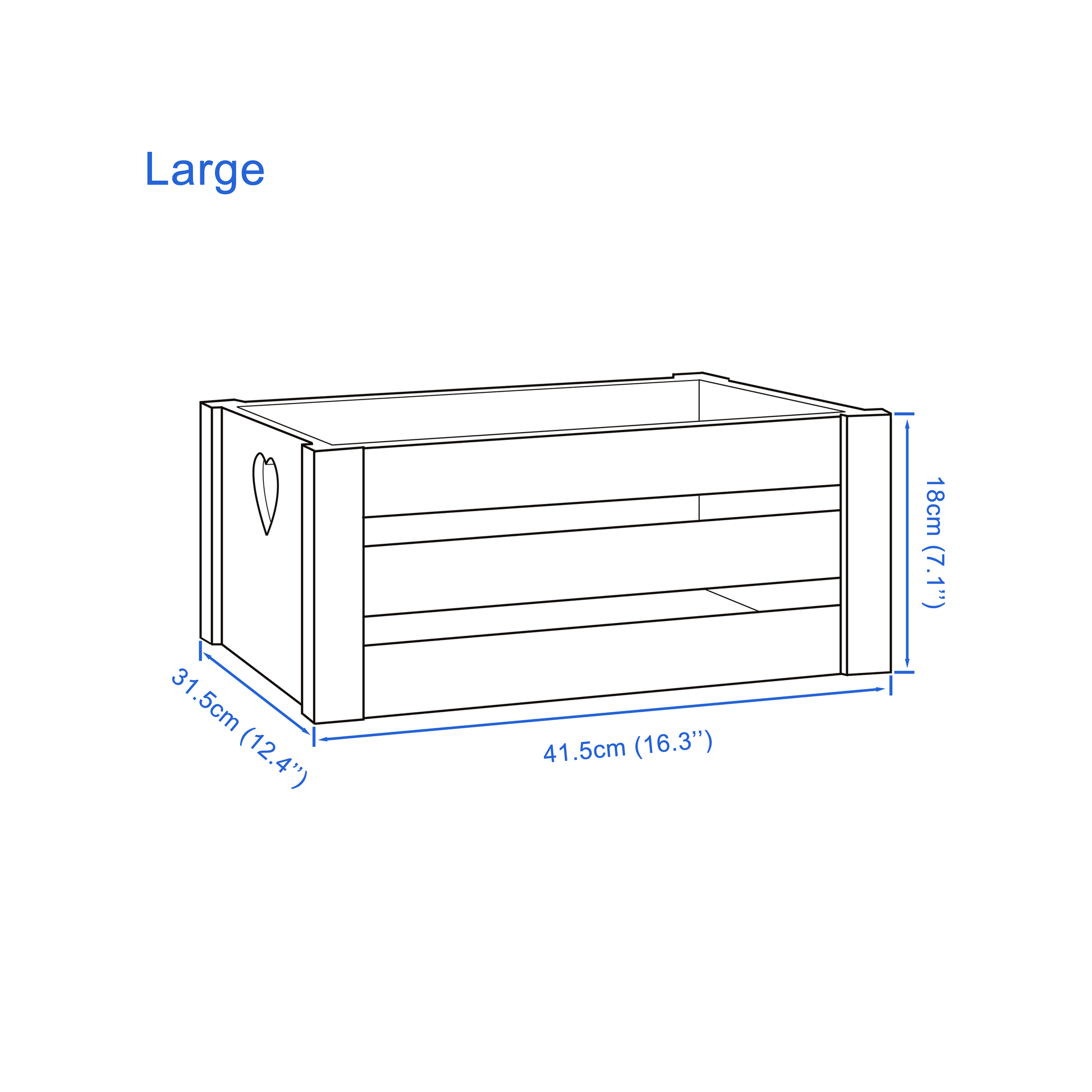 White Heart Cut-out Slatted Wooden Crate - 3 Sizes