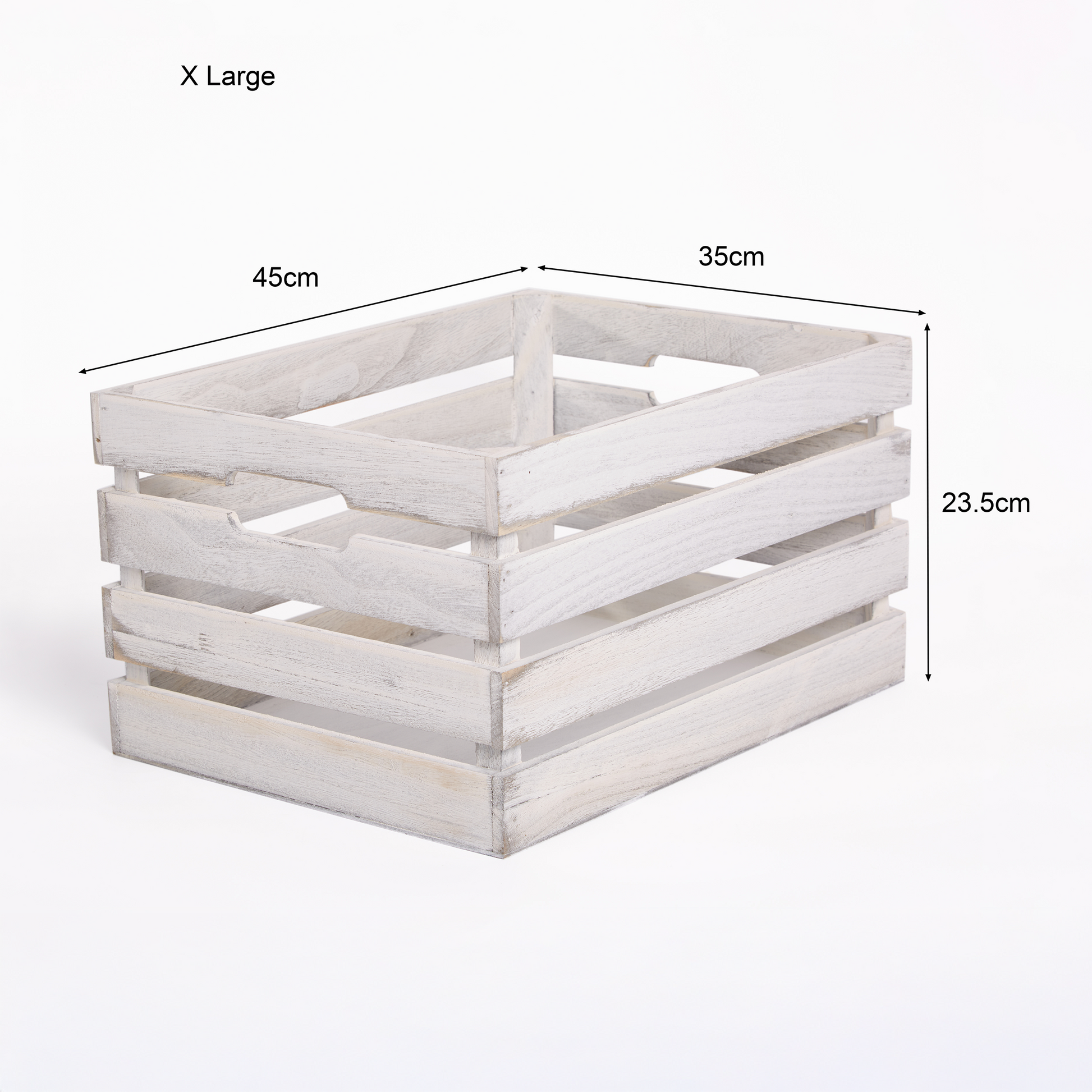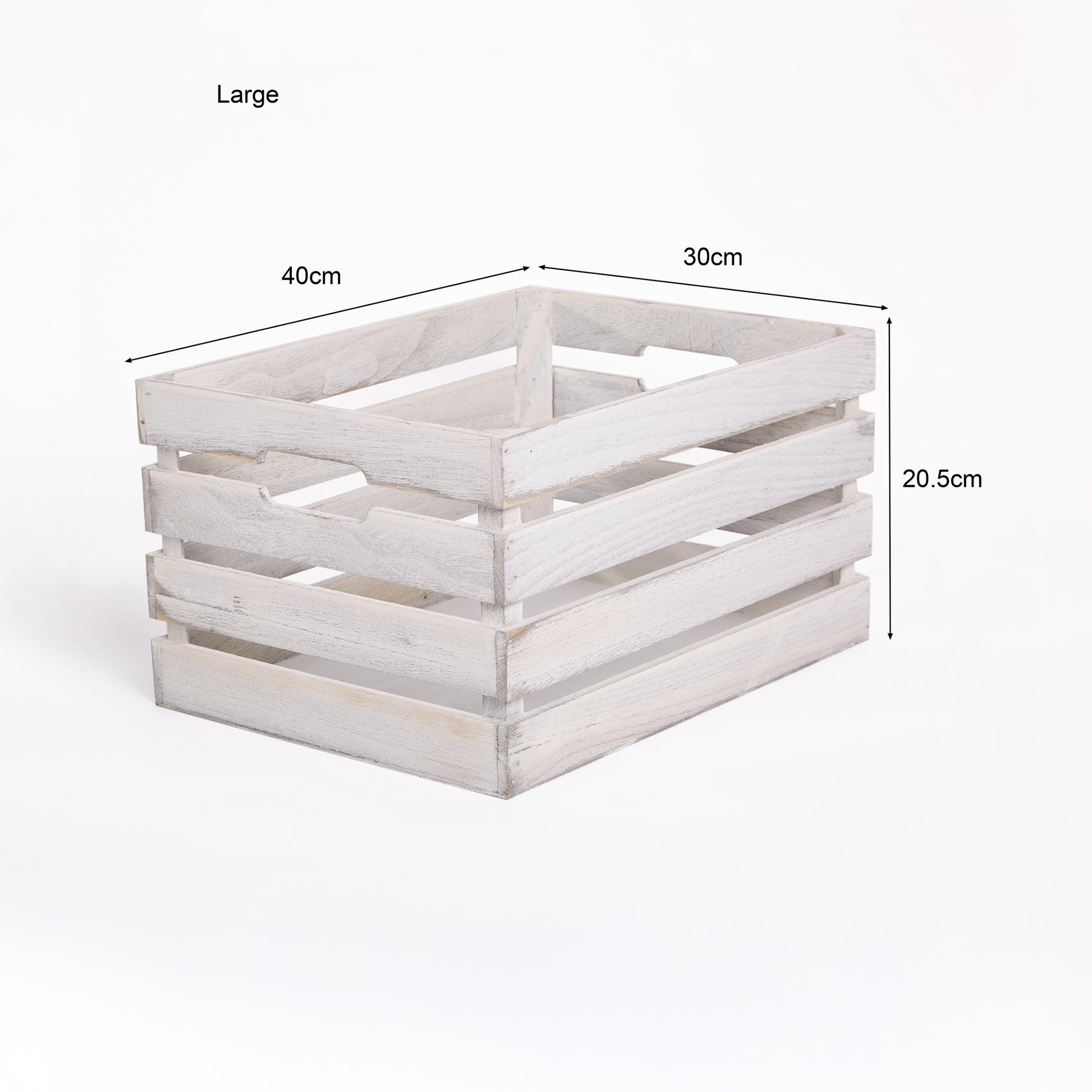 White Wash Slatted Wooden Storage Crate - 3 Sizes