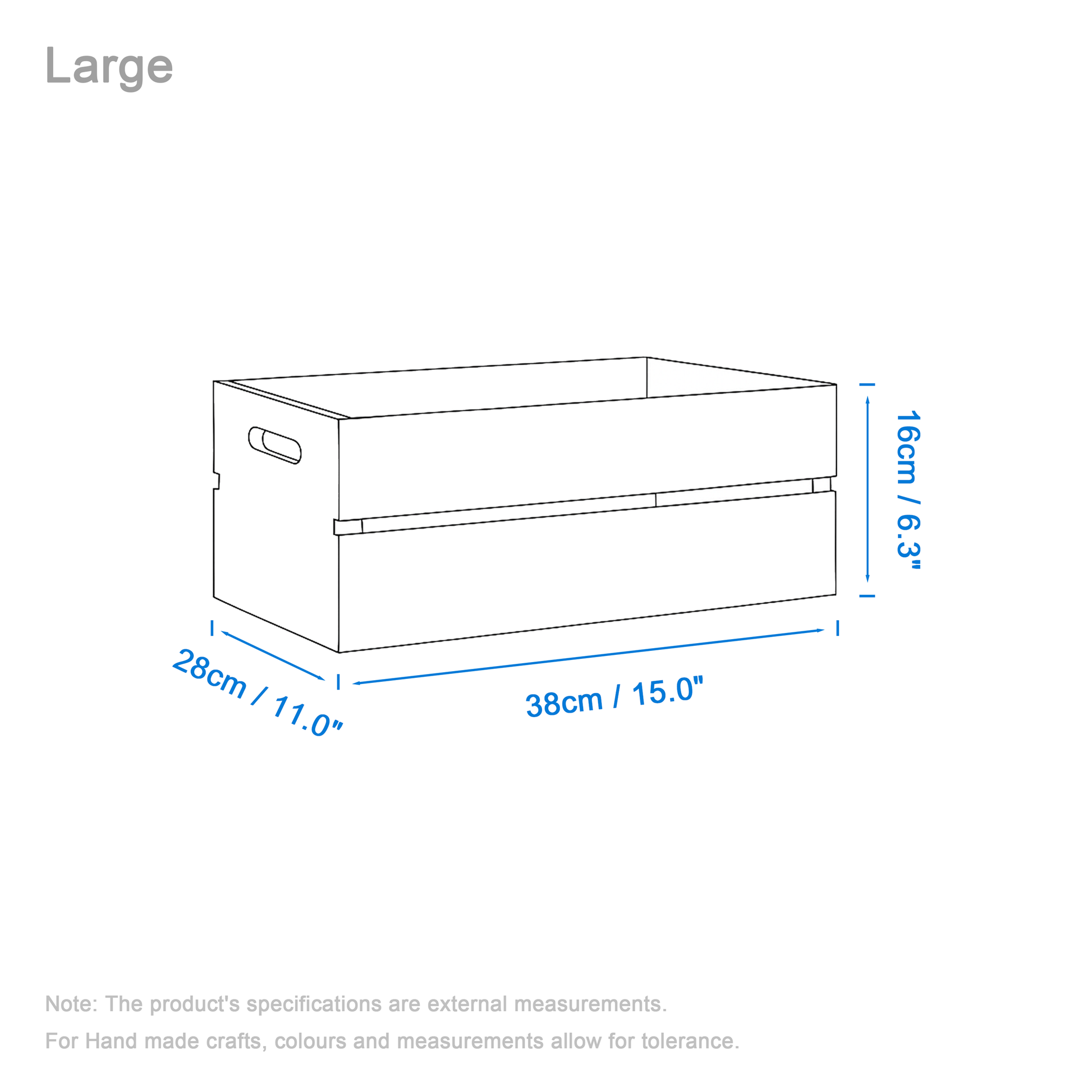 Large: (L x W x H) 38 x 28 x 16cm