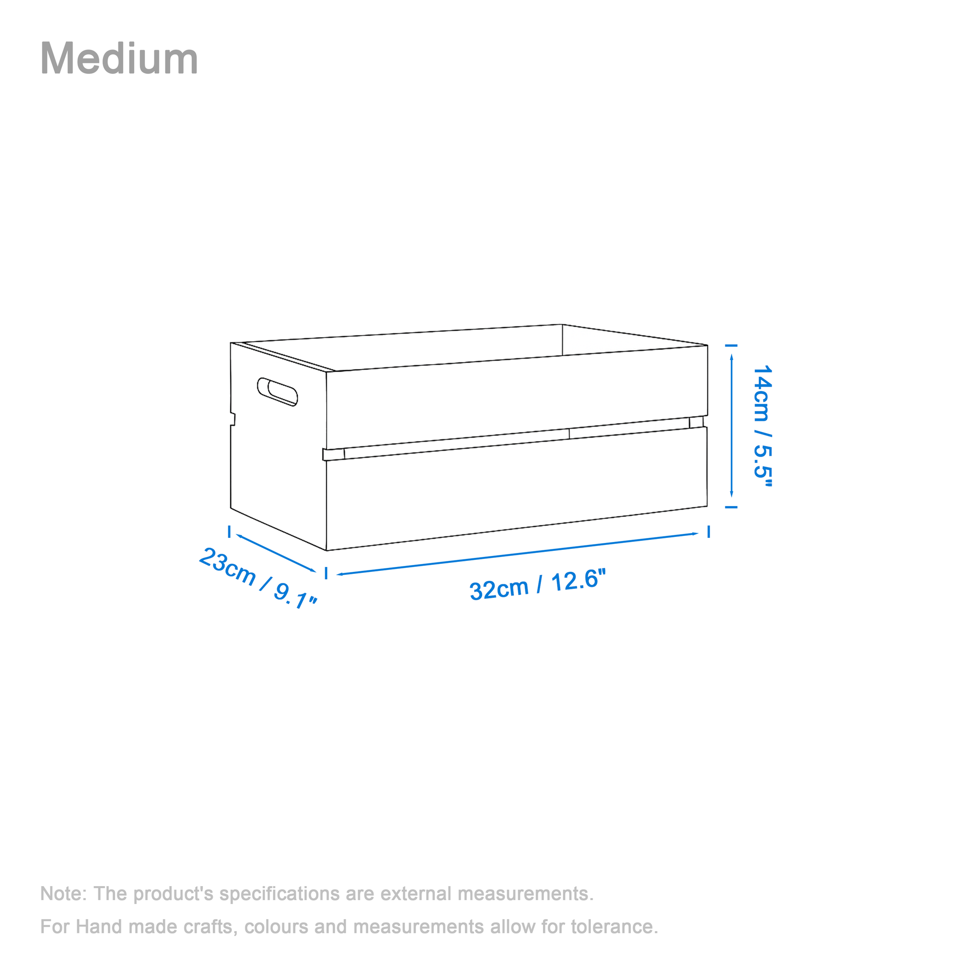 Medium: (L x W x H) 32 x 23 x 14cm