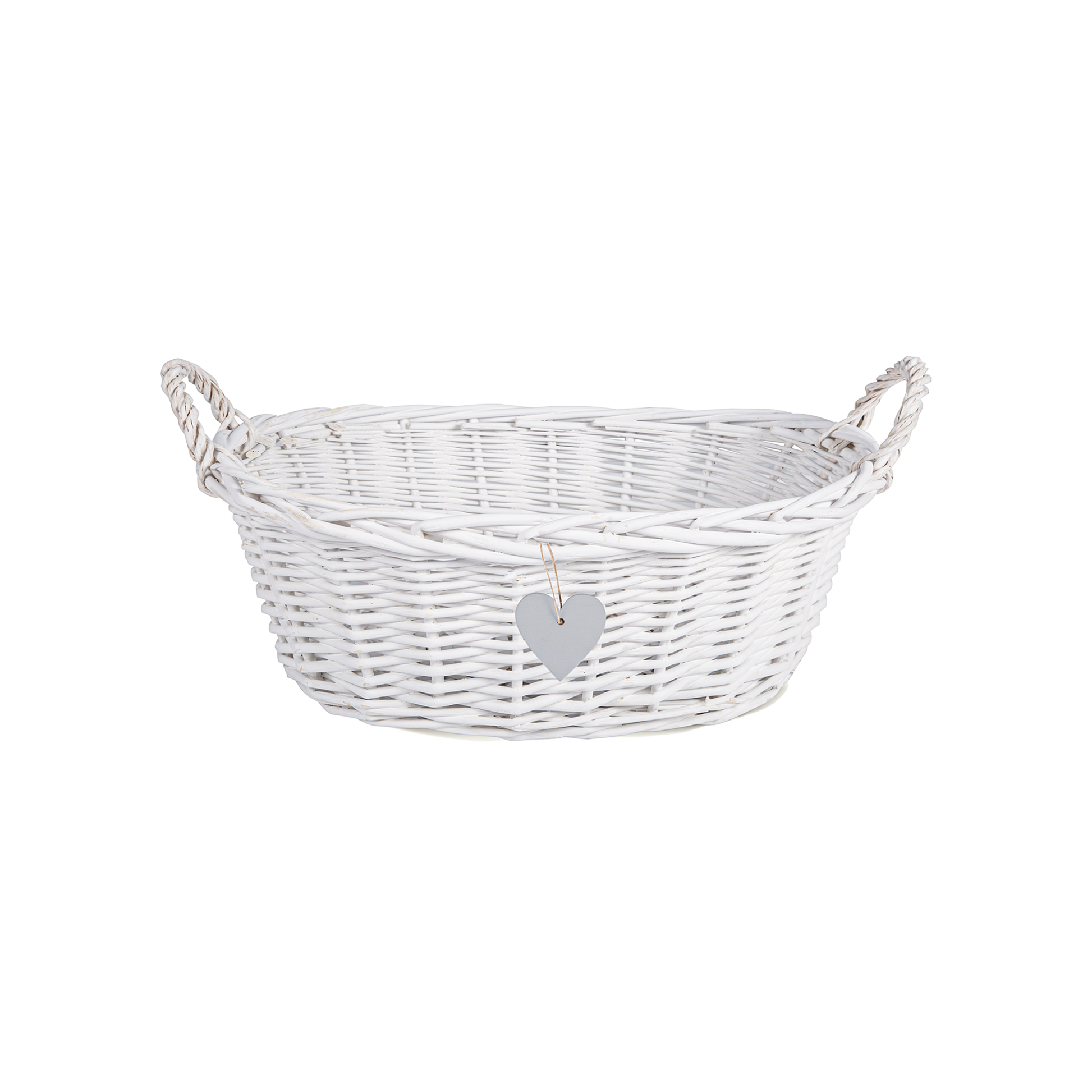 Wicker Gift Packing Basket with Heart Decoration - Grey / White
