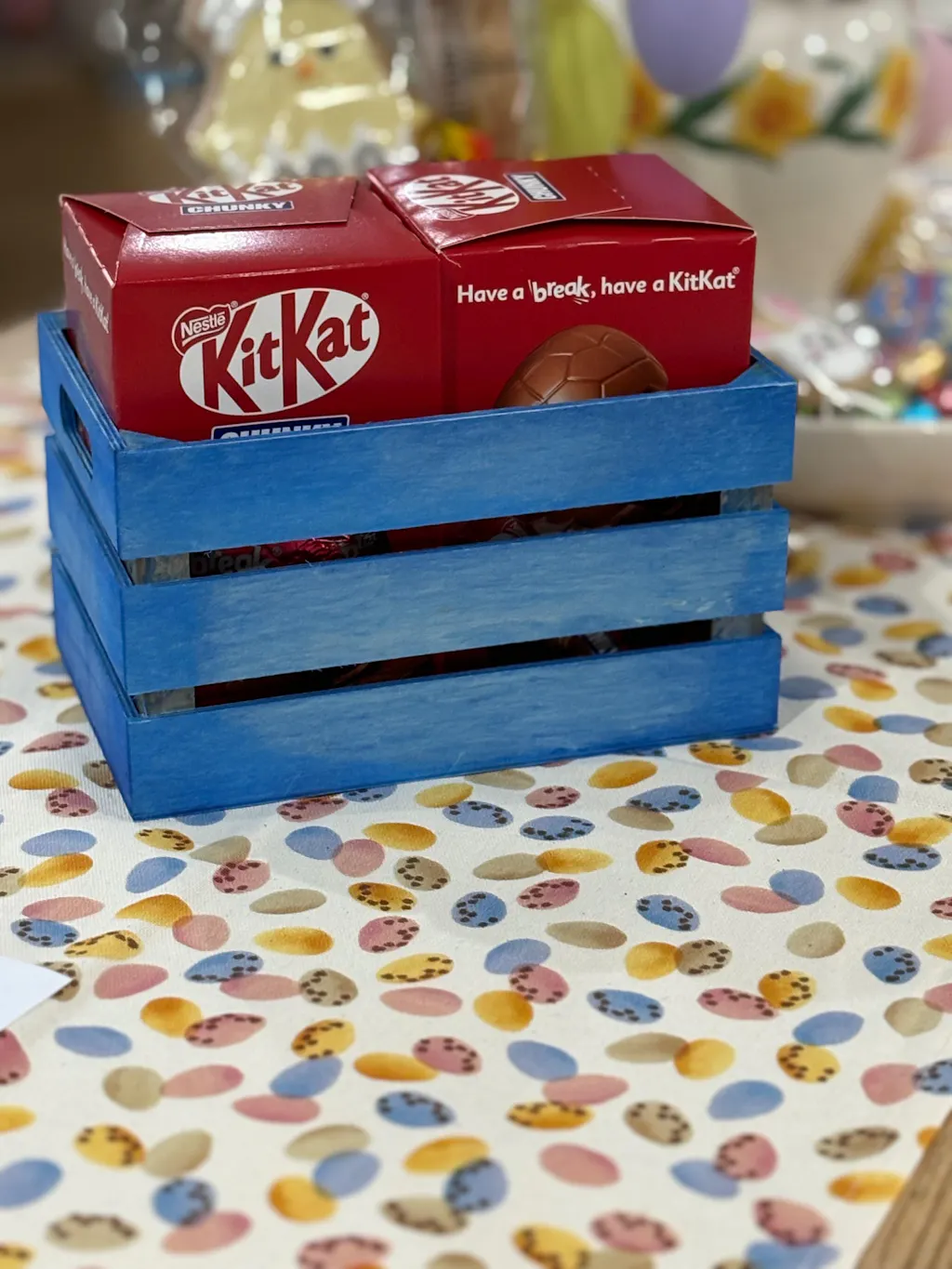 Small Wooden Crate with Handle -Burgundy / Blue